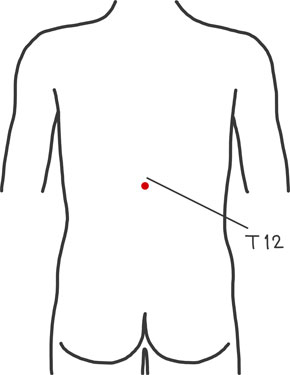 取穴:上背部、後正中線上、第12胸椎棘突起下方の陥凹部 ※別名接骨
