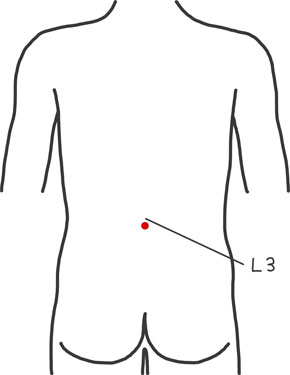 取穴:腰部、後正中線上、第3腰椎棘突起下方の陥凹部