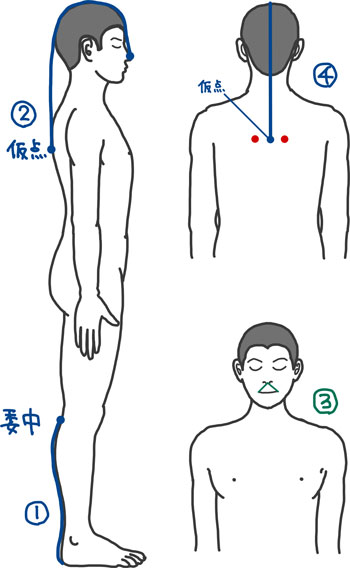 取穴:紐を使い、背部に計2穴を取る ※詳細は教科書参照