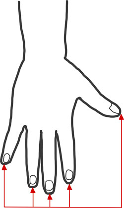 取穴:両手十指の各先端中央に取る ※別名鬼城・十指端
