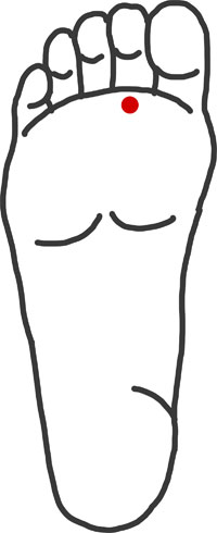 取穴:足底部、第2中足指節関節のやや後方に取る
