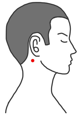 取穴:頸部、乳様突起の下縁、翳風( 三焦 )の後方約1寸に取る